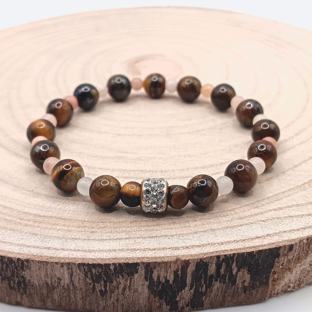 Színe a mély csokoládébarnától a világos, aranysárgás árnyalatokig terjed, és gyakran kombinálják más ásványokkal (pl. rózsakvarccal vagy lávakővel) kontrasztos, mégis harmonikus hatásért.