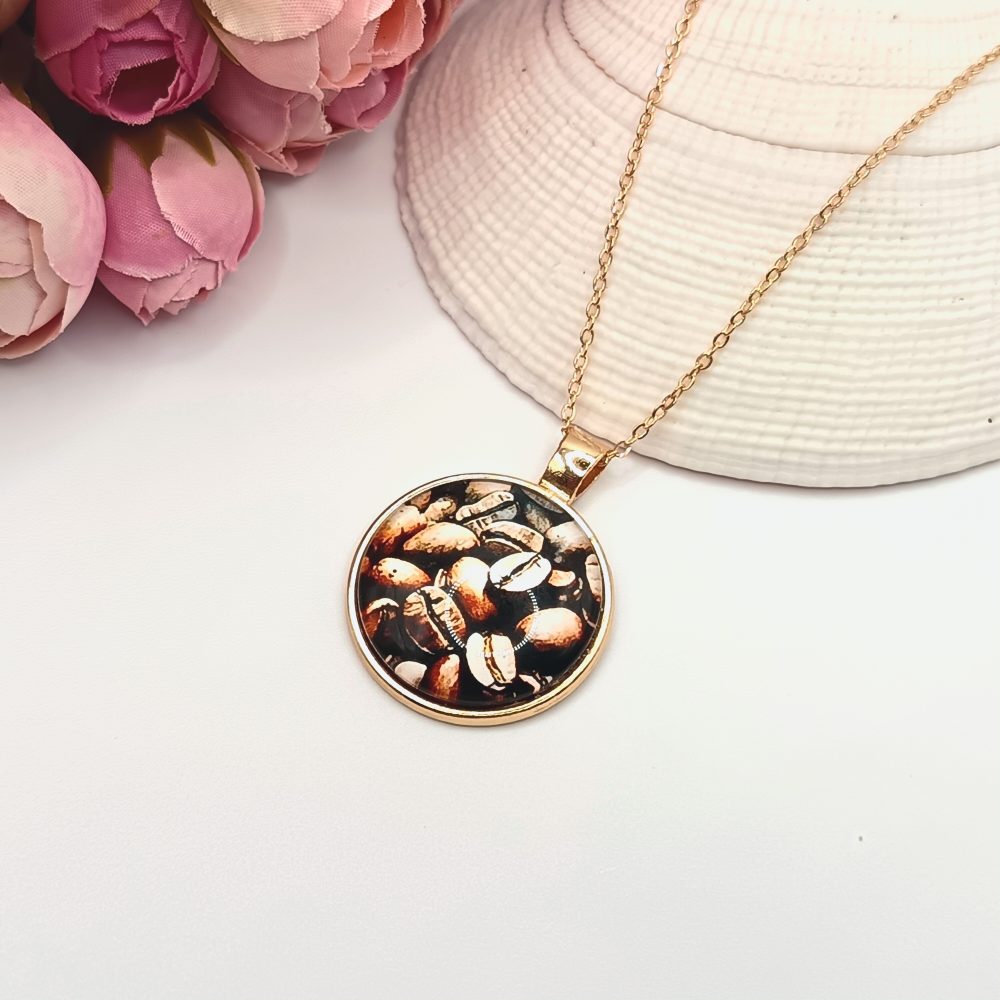Arany nyaklánc – kávészemes lencsével, arany kávészemgyöngyökkel