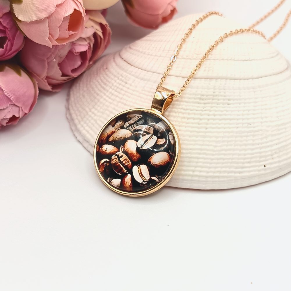 Antik arany nyaklánc - kávészemes, kávészív lencsével 3800 Ft