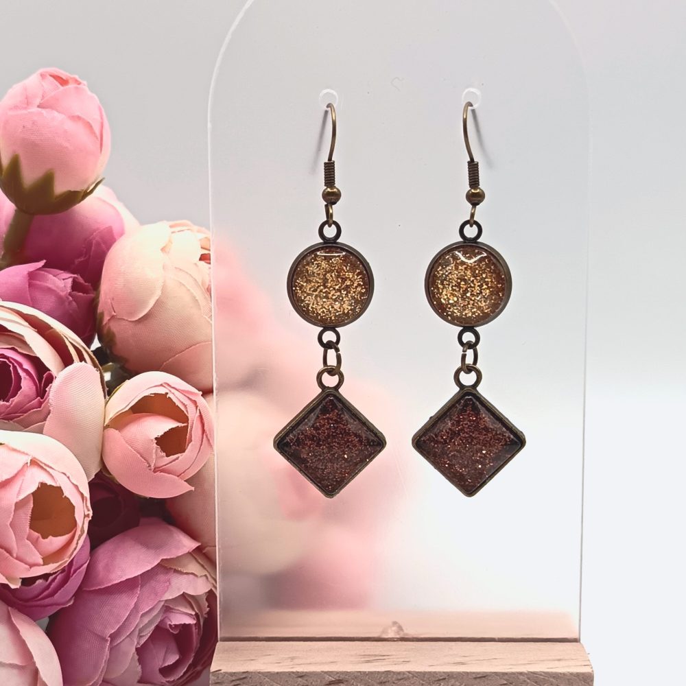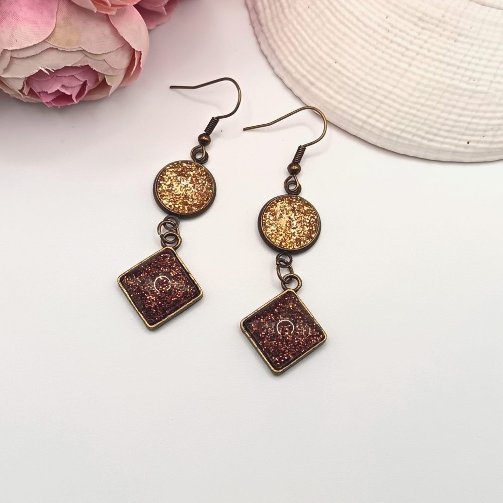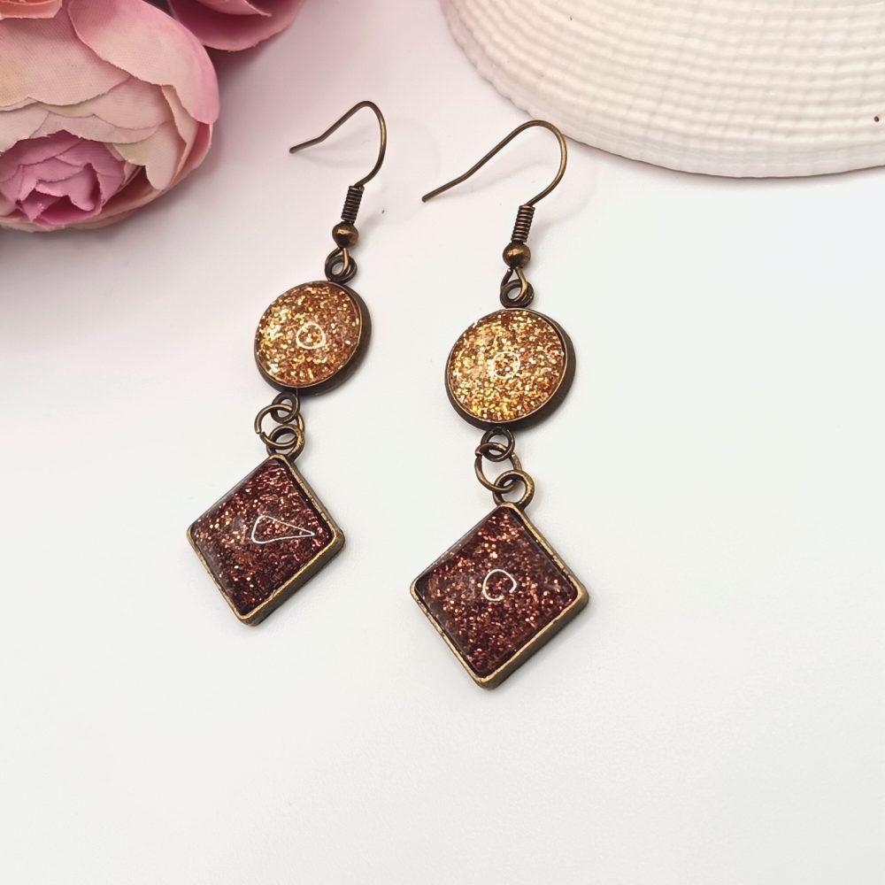 Kezdőlap Fülbevalók Akasztós fülbevaló Antik bronz akasztós fülbevaló – antik bronzbarna / antik arany csillogó textilbőrrel