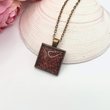 Antik bronz nyaklánc – antik bronzbarna / antik arany csillogó textilbőrrel