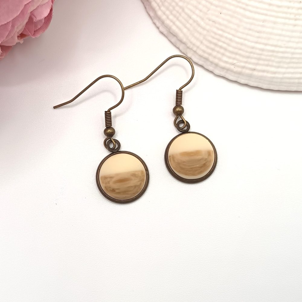 Antik bronz akasztós fülbevaló – bézs / barna lencsével