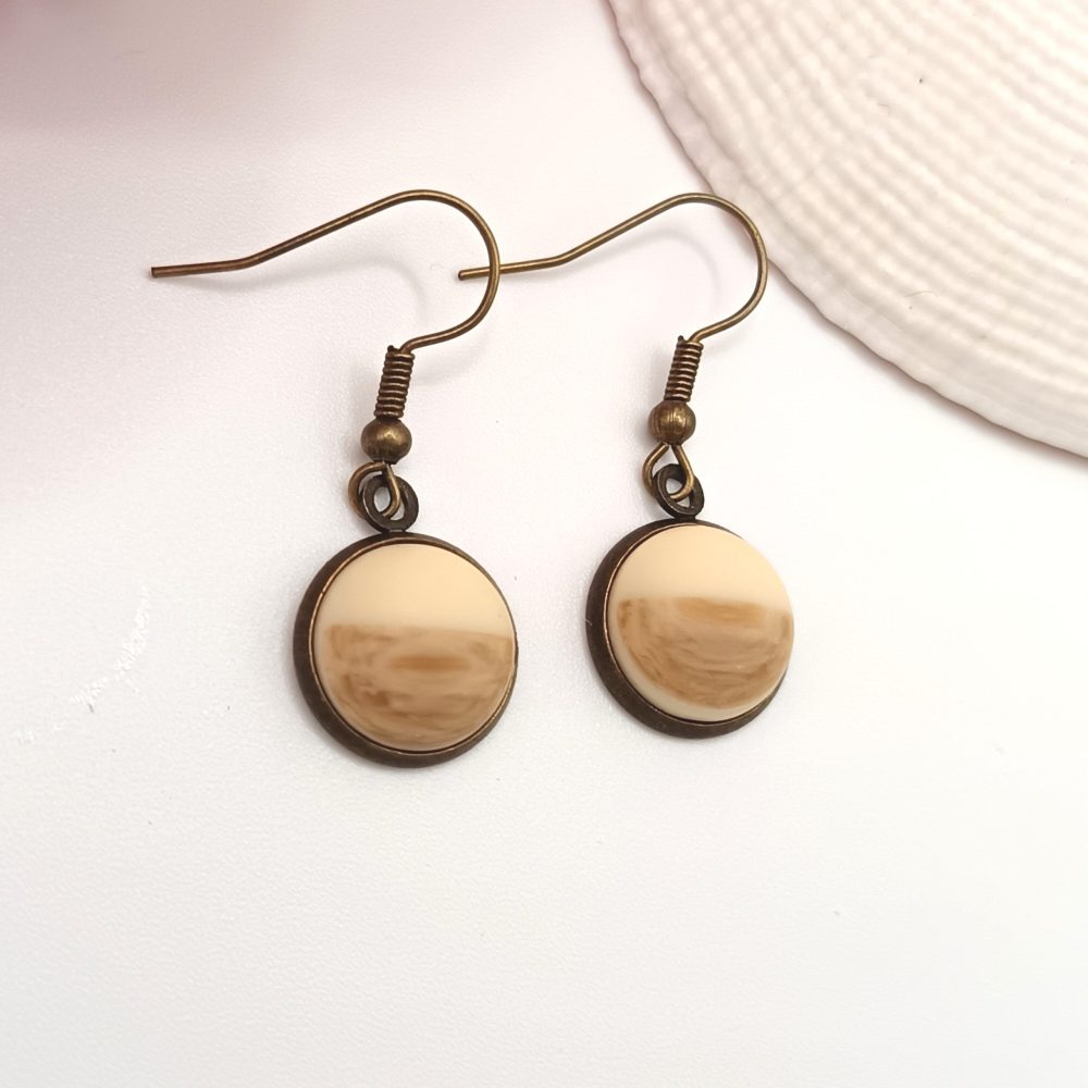 Kezdőlap Fülbevalók Akasztós fülbevaló Antik bronz akasztós fülbevaló – bézs / barna lencsével