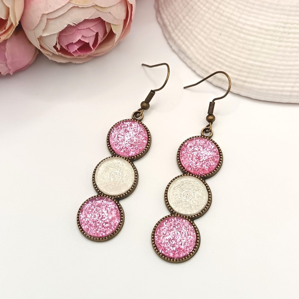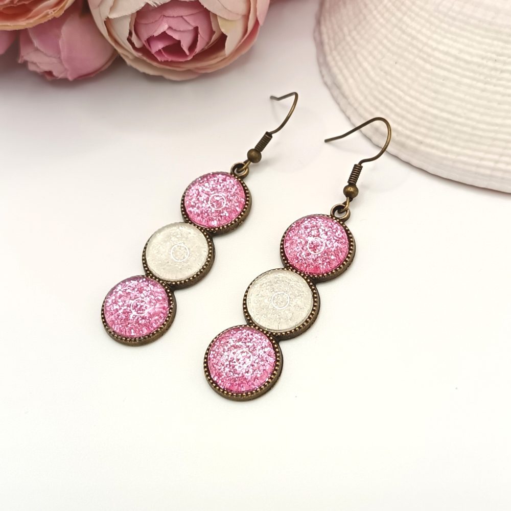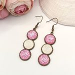 Kezdőlap Fülbevalók Akasztós fülbevaló Antik bronz akasztós fülbevaló – csillogó fehér/rózsaszín textilbőrrel
