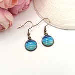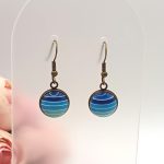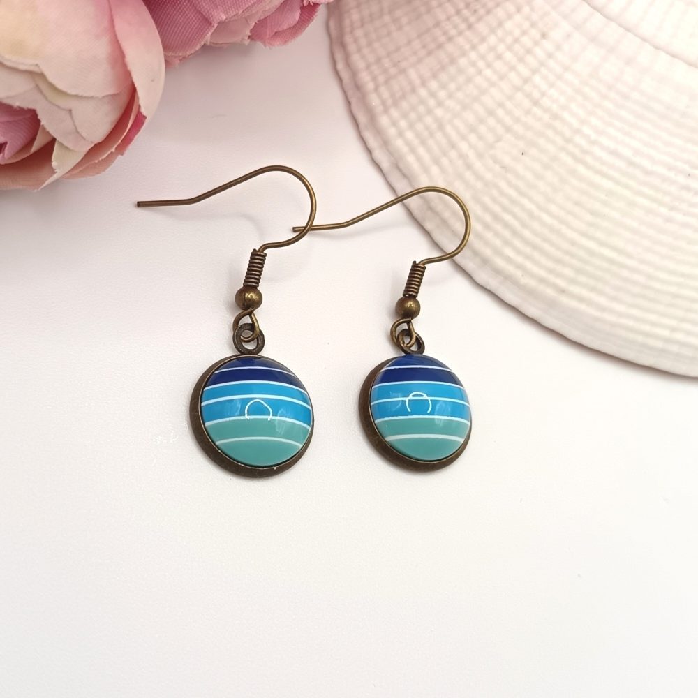 Kezdőlap Fülbevalók Akasztós fülbevaló Antik bronz akasztós fülbevaló – kék / fehér csíkos lencsével