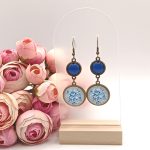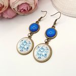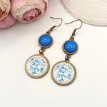 Kezdőlap Fülbevalók Akasztós fülbevaló Antik bronz akasztós fülbevaló – kék rózsa mintával