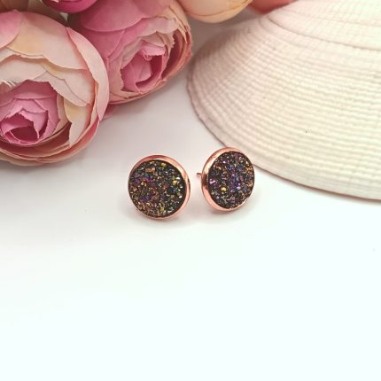 Rózsaarany bedugós fülbevaló - csillogó bronzbarna lencsével 1100 Ft