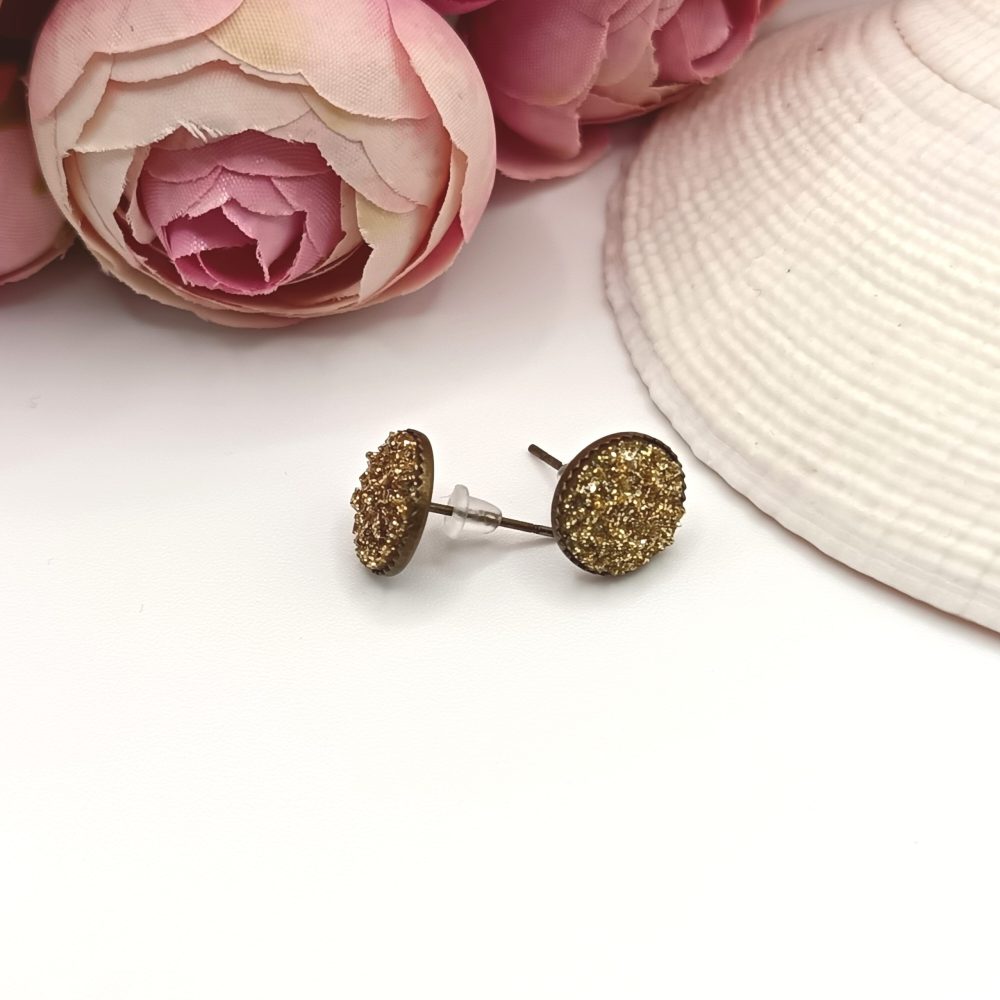 Kezdőlap Fülbevalók Bedugós fülbevaló Antik bronz bedugós fülbevaló – csillogó arany lencsével