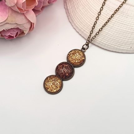Antik bronz nyaklánc – antik bronzbarna / antik arany csillogó textilbőrrel