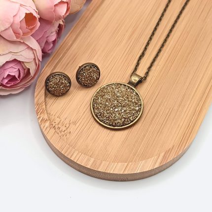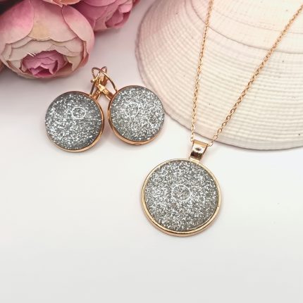 Arany ékszerszett – nyaklánc és fülbevaló ezüst csillogó textilbőrrel