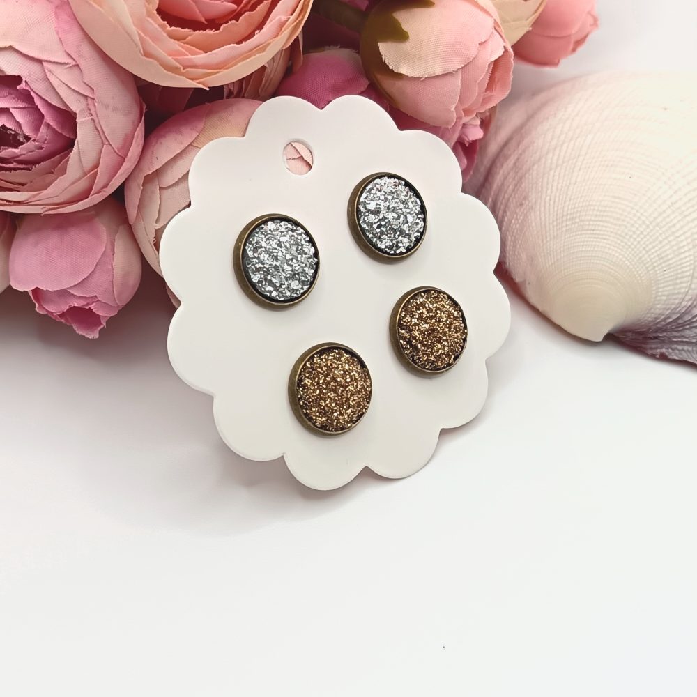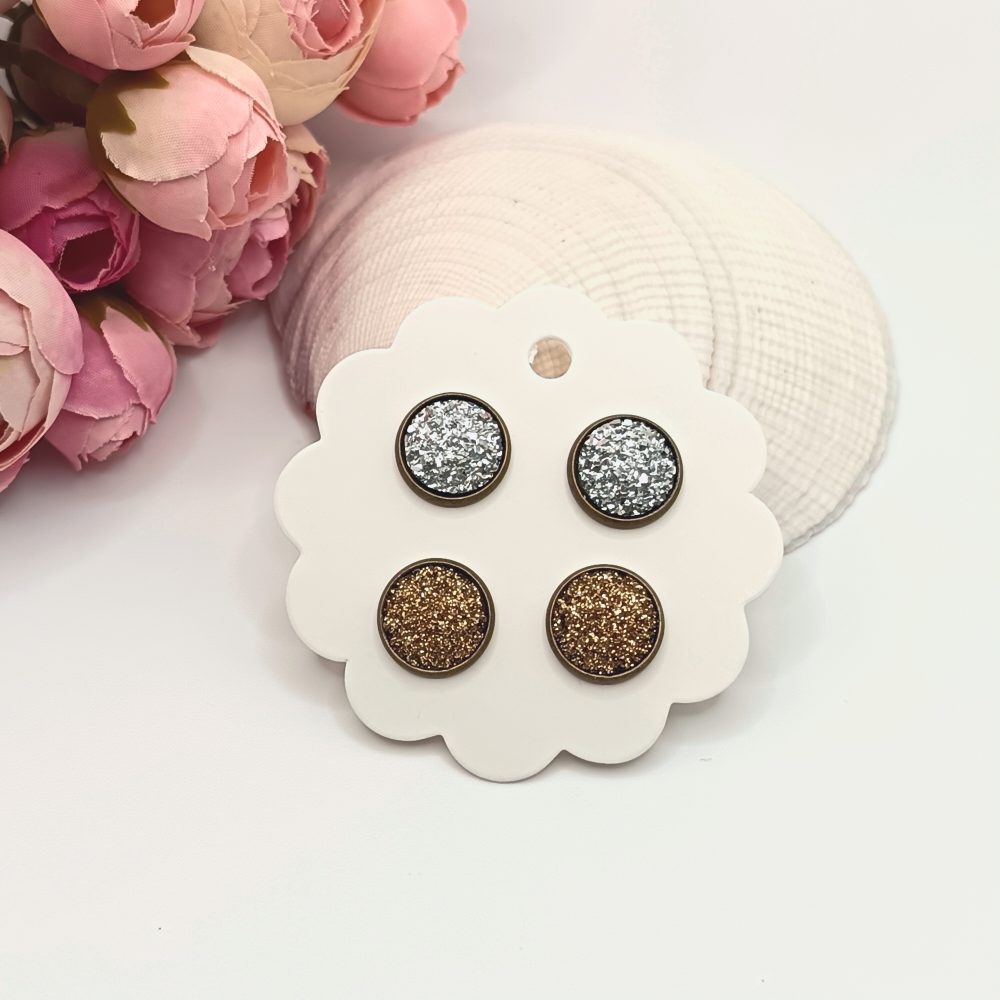 Kezdőlap Fülbevalók Bedugós fülbevaló Páros bedugós fülbevalók Antik bronz bedugós fülbevaló – csillogó ezüst / arany lencsékkel