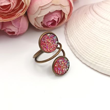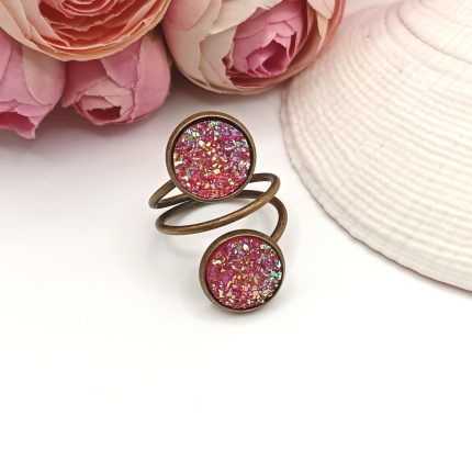 Antik bronz gyűrű – csillogó piros dupla lencsével