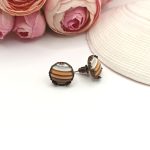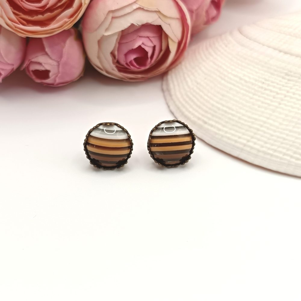 Kezdőlap Fülbevalók Bedugós fülbevaló Antik bronz bedugós fülbevaló – fehér / barna csíkos lencsével