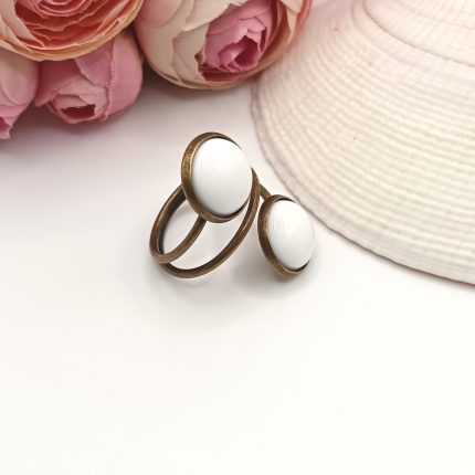 Antik bronz gyűrű – fehér dupla lencsével