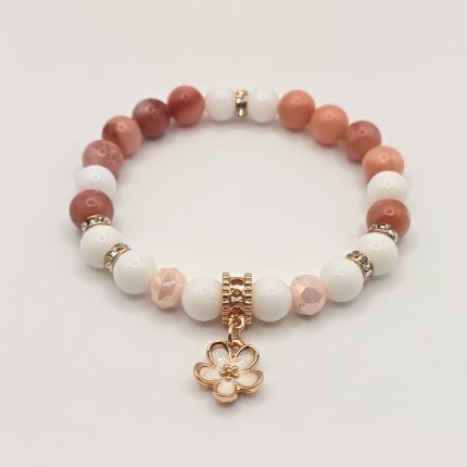 Őszibarack jáde – fehér achát karkötő arany részletekkel