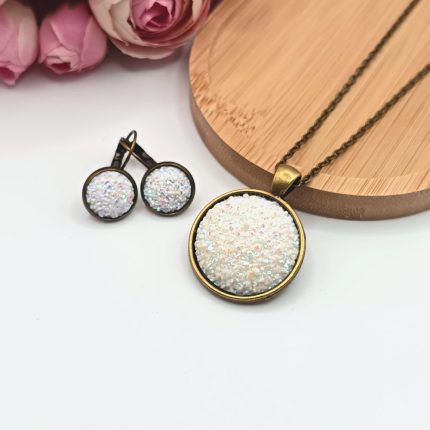 Antik bronz ékszerszett – csillogó fehér lencsével
