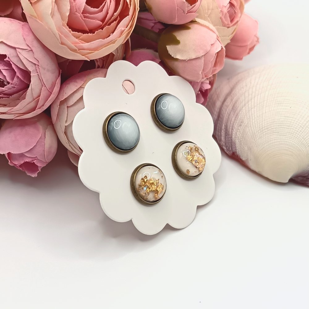Kezdőlap Fülbevalók Bedugós fülbevaló Páros bedugós fülbevalók Antik bronz bedugós fülbevaló – fehér / fehér aranyozott lencsékkel
