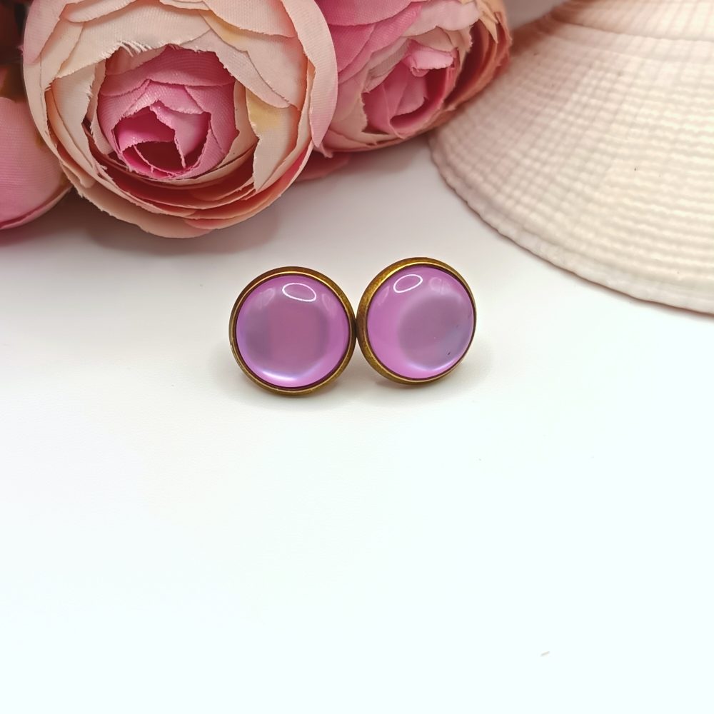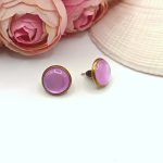 Kezdőlap Fülbevalók Bedugós fülbevaló Antik bronz bedugós fülbevaló – halványlila macskaszem lencsével
