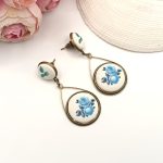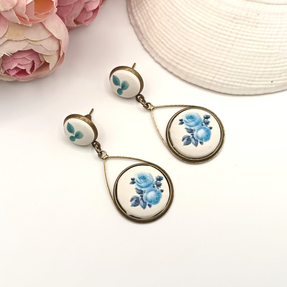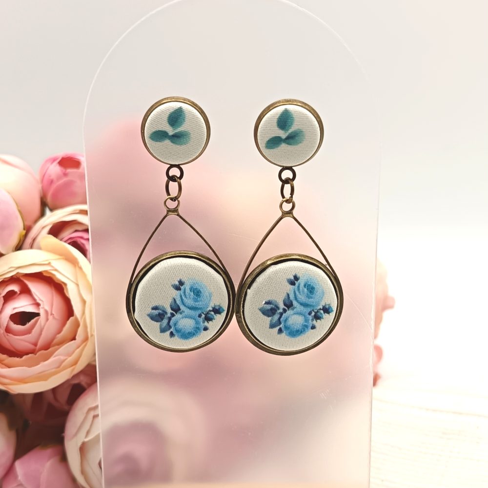 Kezdőlap Fülbevalók Bedugós fülbevaló Antik bronz bedugós fülbevaló – kék rózsa mintás textillel