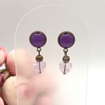 Kezdőlap Fülbevalók Bedugós fülbevaló Antik bronz bedugós fülbevaló – lila üveg lencsével és lila roppantott szív gyönggyel