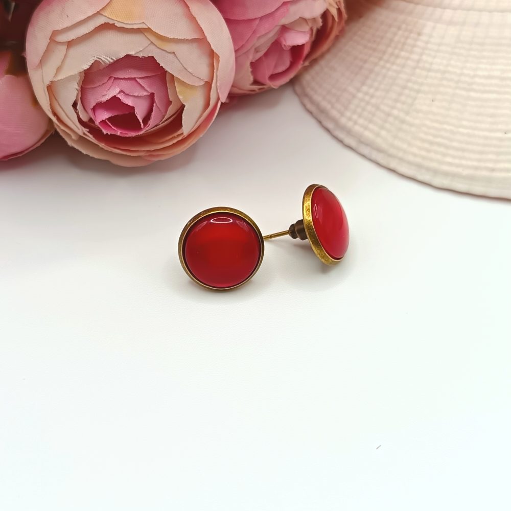 Kezdőlap Fülbevalók Bedugós fülbevaló Antik bronz bedugós fülbevaló – piros macskaszem lencsével