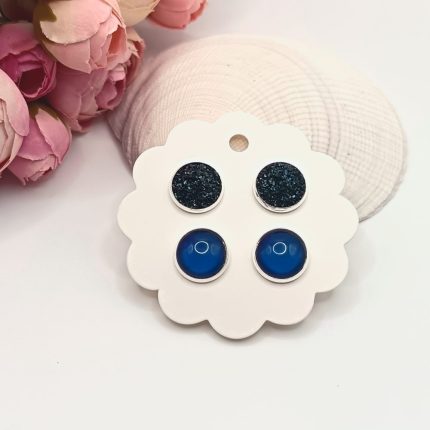 Ezüst bedugós fülbevaló - csillogó sötétkék / tintakék lencsékkel 1990 Ft