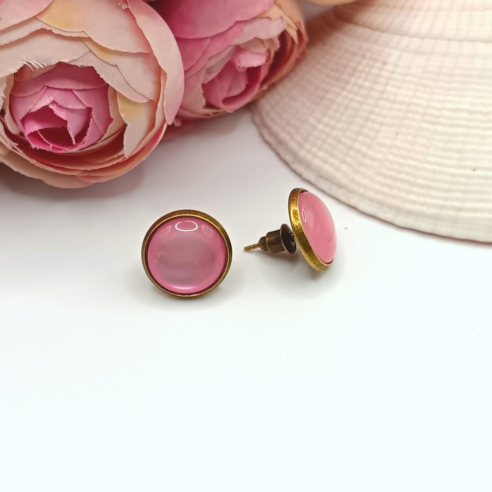 Kezdőlap Fülbevalók Bedugós fülbevaló Antik bronz bedugós fülbevaló – rózsaszín macskaszem lencsével