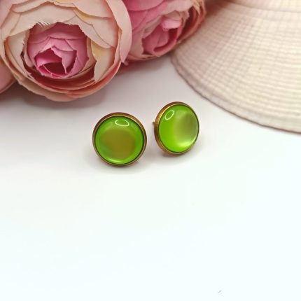 Antik bronz bedugós fülbevaló - világoszöld macskaszem lencsével 1100 Ft