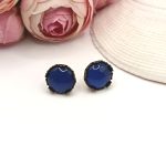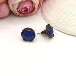 Kezdőlap Fülbevalók Bedugós fülbevaló Antik bronz bedugós fülbevaló – sötétkék üveg lencsével