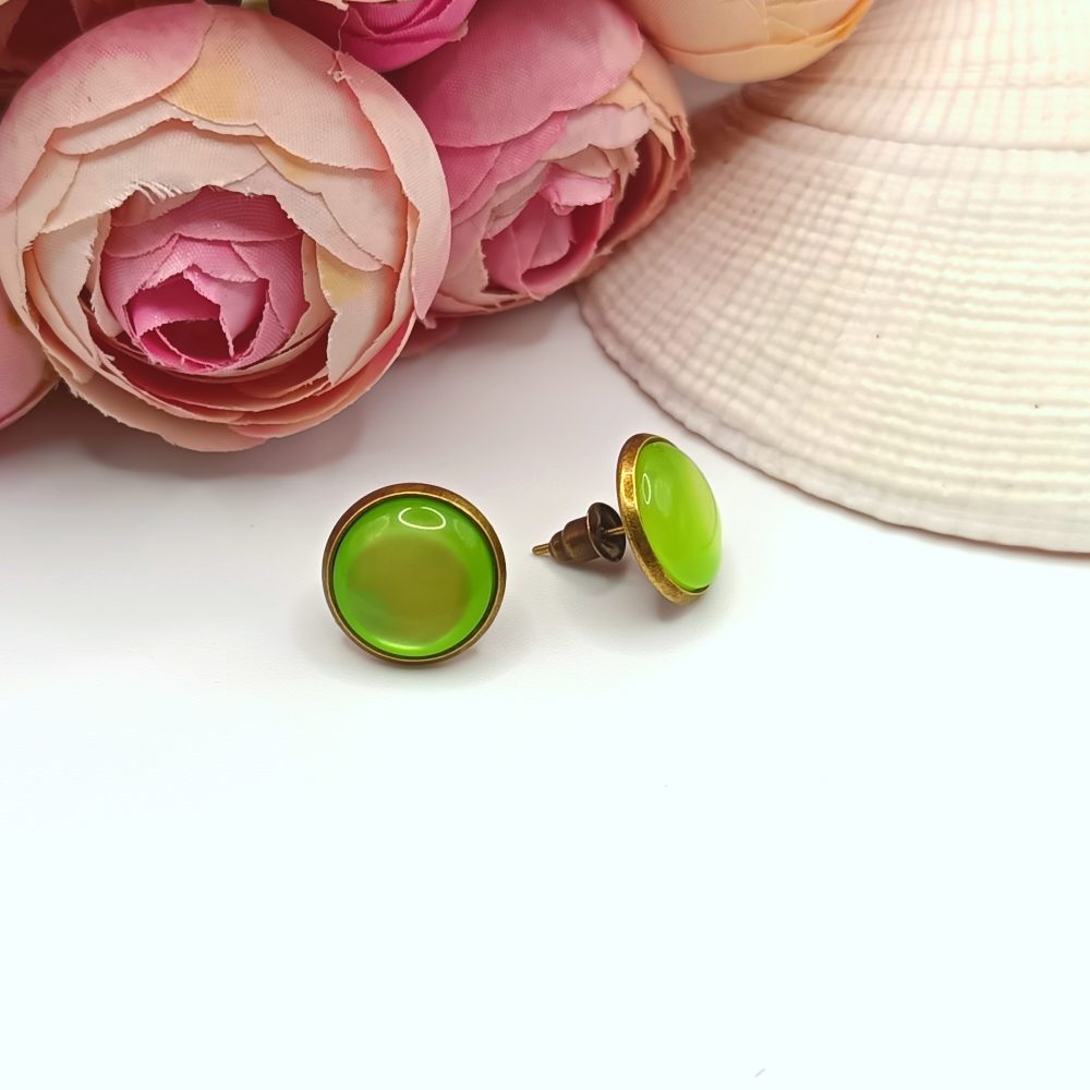 Kezdőlap Fülbevalók Bedugós fülbevaló Antik bronz bedugós fülbevaló – világoszöld macskaszem lencsével