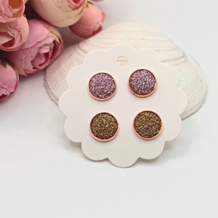 Rózsaarany bedugós fülbevaló - csillogó rózsaszín / arany lencsékkel 1990 Ft