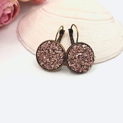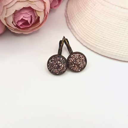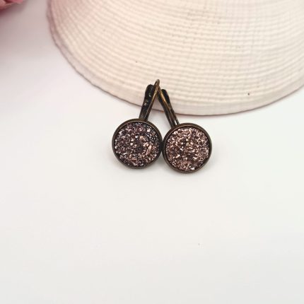 Antik bronz franciakapcsos fülbevaló – csillogó bronzbarna lencsével