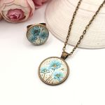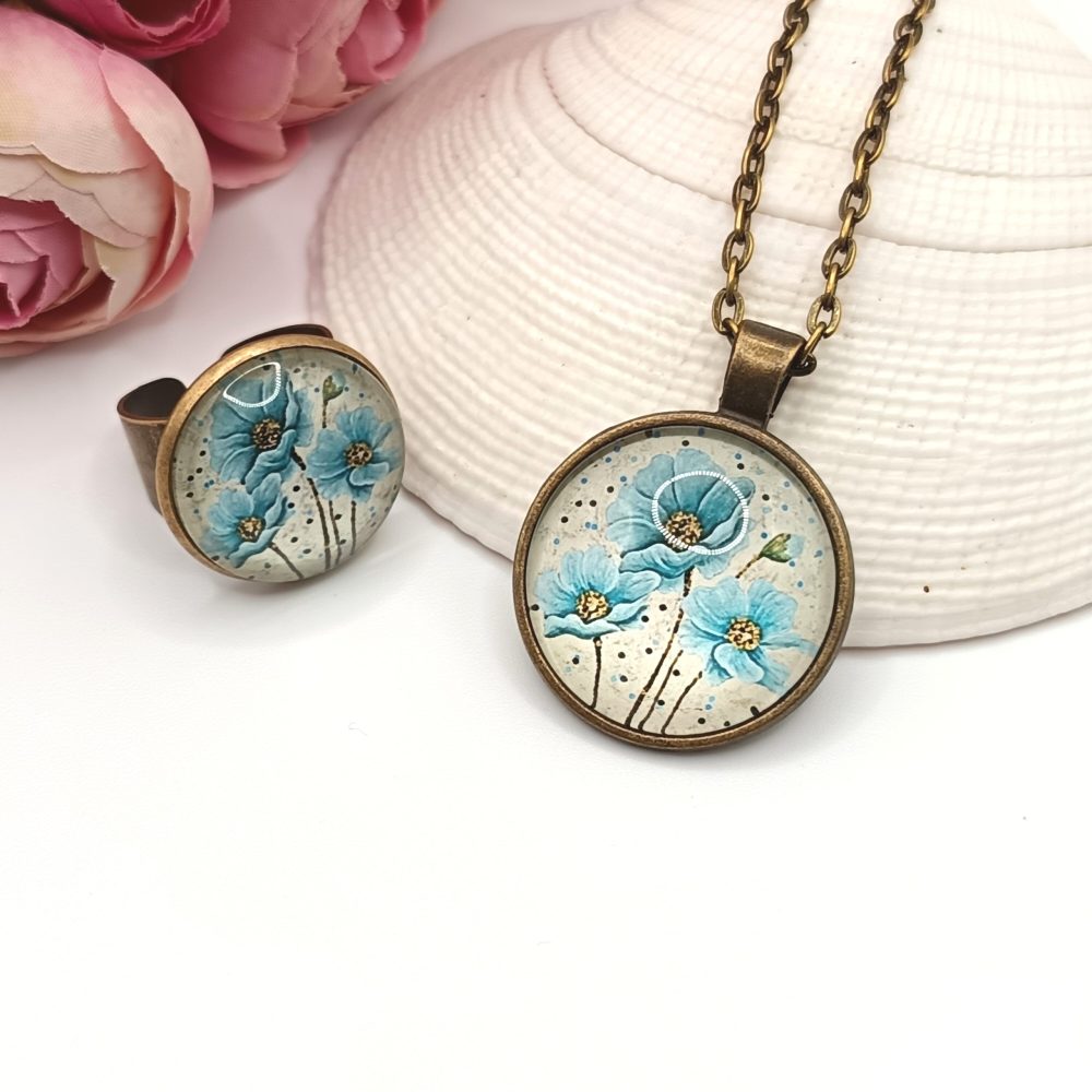 Kezdőlap Szettek Antik bronz ékszerszett – nyaklánc és gyűrű kék virágmintával