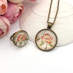 Kezdőlap Szettek Antik bronz ékszerszett – nyaklánc és gyűrű rózsa mintával