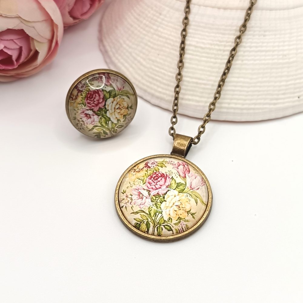 Kezdőlap Szettek Antik bronz ékszerszett – nyaklánc és gyűrű rózsa mintával