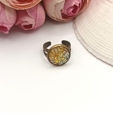 Rózsaarany gyűrű – macaron citromsárga lencsével