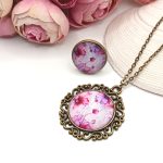 Kezdőlap Szettek Antik bronz ékszerszett – nyaklánc és gyűrű rózsaszín virágmintával