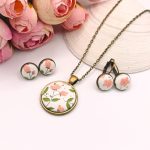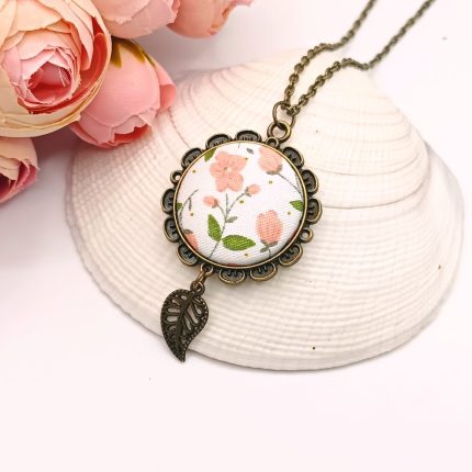 Antik bronz nyaklánc – barack virágos textil lencsével