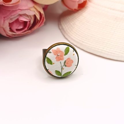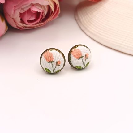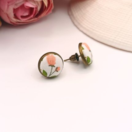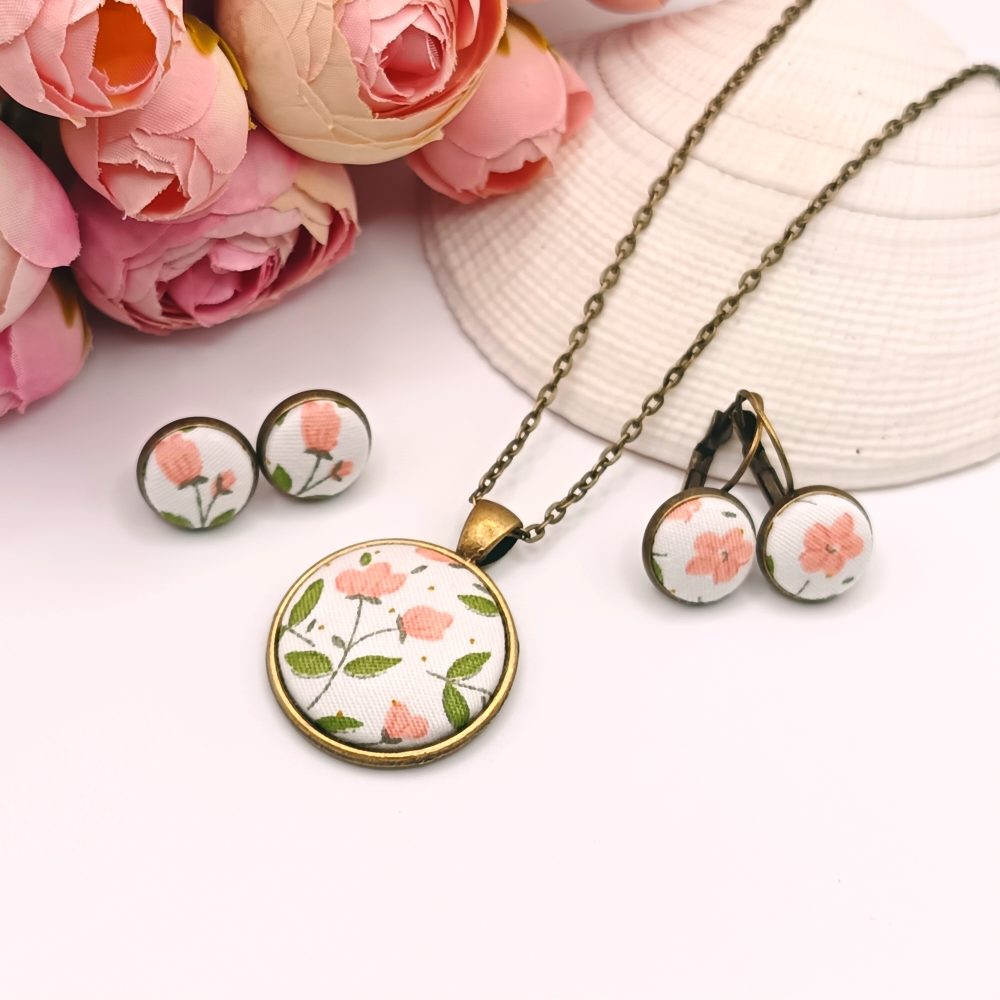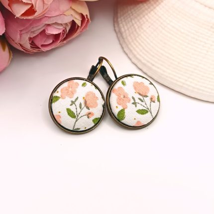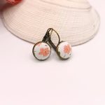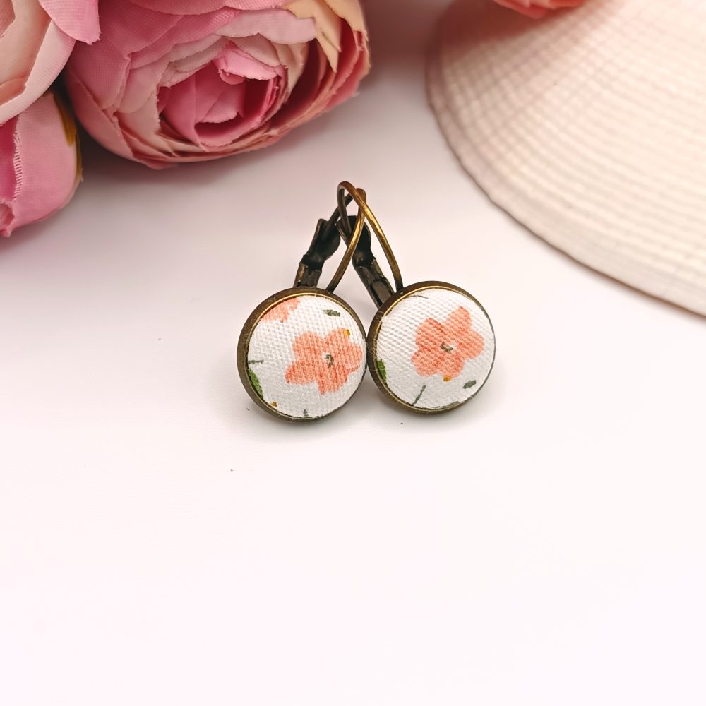 Antik bronz franciakapcsos fülbevaló - barack virágos textil lencsével 2300 Ft