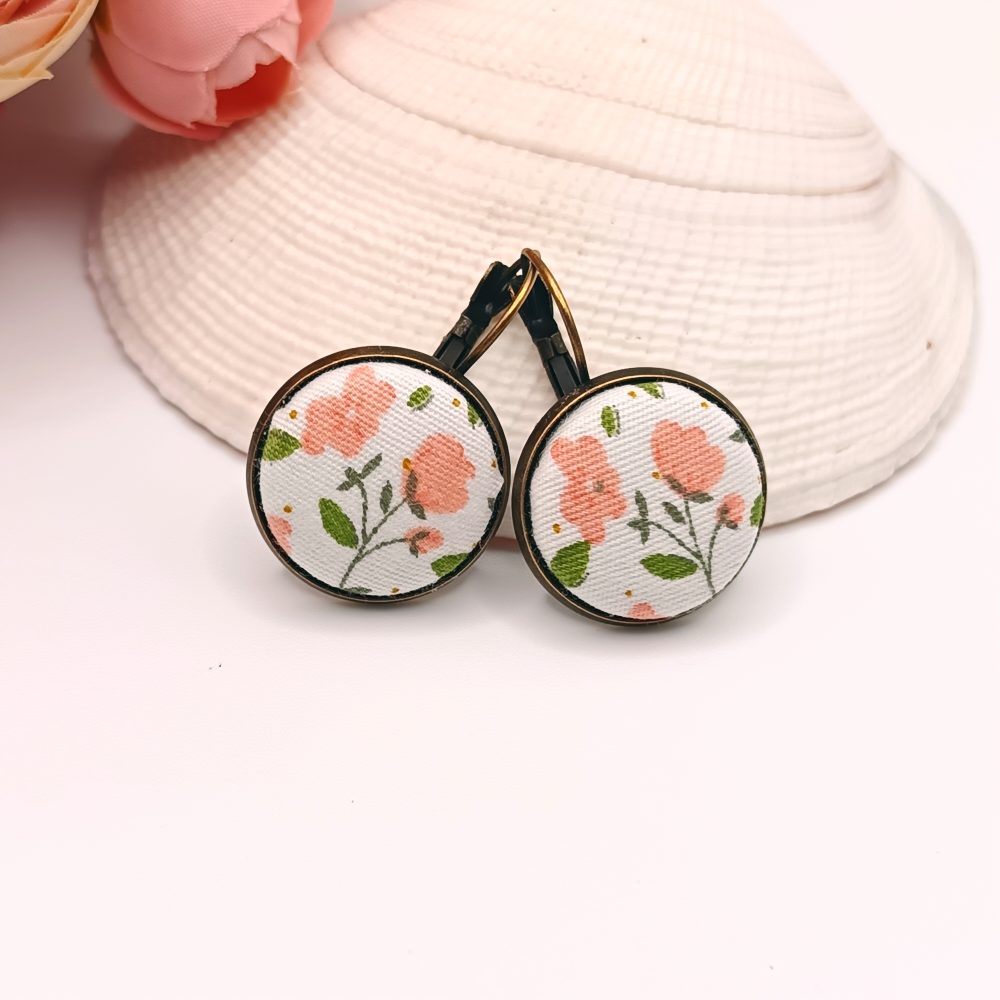 Antik bronz franciakapcsos fülbevaló – barack virágos textil lencsével 1800 Ft
