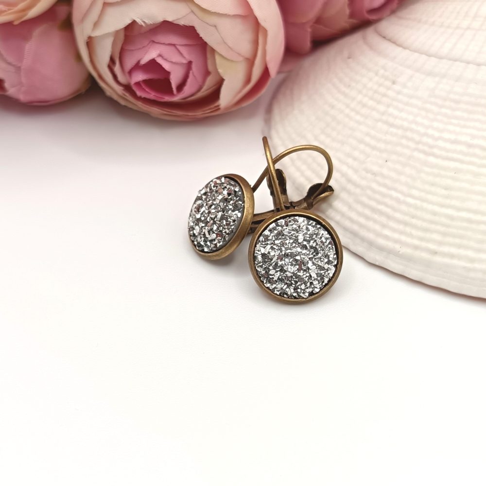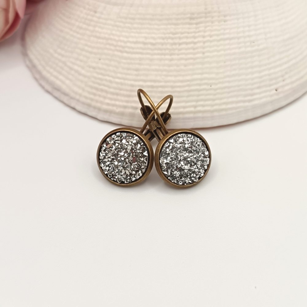 Kezdőlap Fülbevalók Franciakapcsos fülbevaló Antik bronz franciakapcsos fülbevaló – csillogó ezüst lencsével