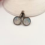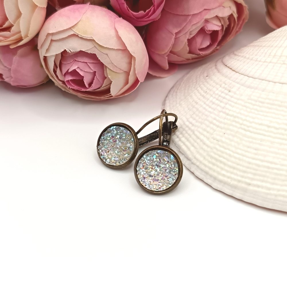 Antik bronz franciakapcsos fülbevaló – csillogó ezüst lencsével