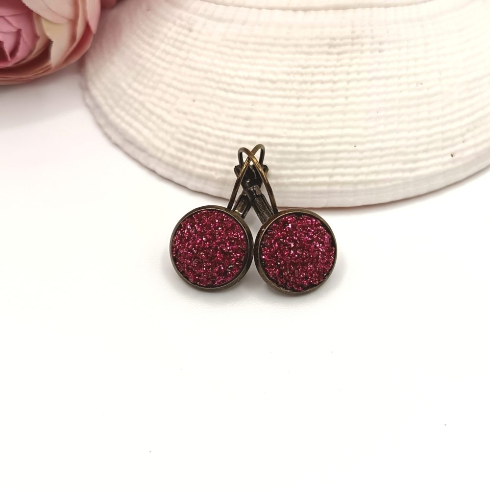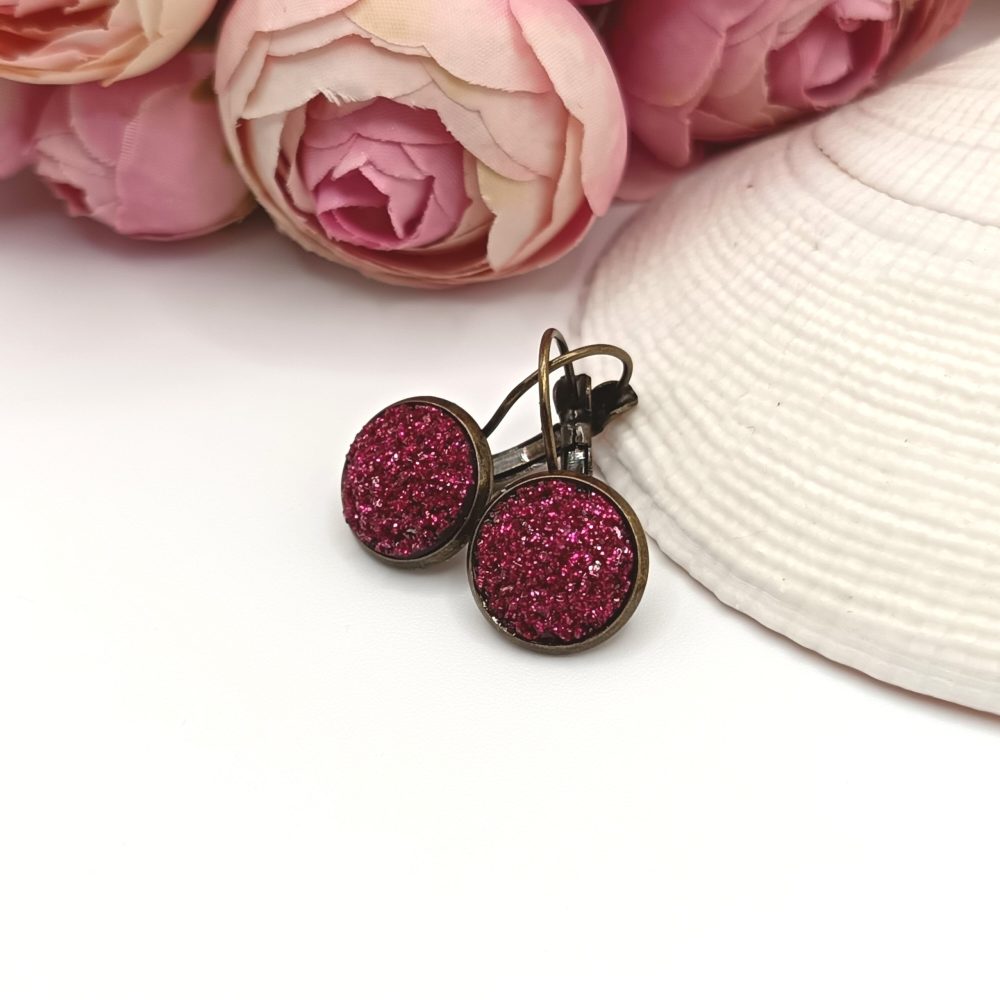 Kezdőlap Fülbevalók Franciakapcsos fülbevaló Antik bronz franciakapcsos fülbevaló – csillogó pink lencsével