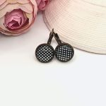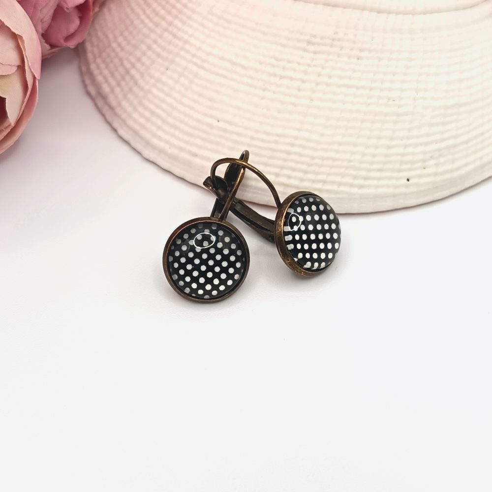 Kezdőlap Fülbevalók Franciakapcsos fülbevaló Antik bronz franciakapcsos fülbevaló – fekete, fehér pöttyös lencsével