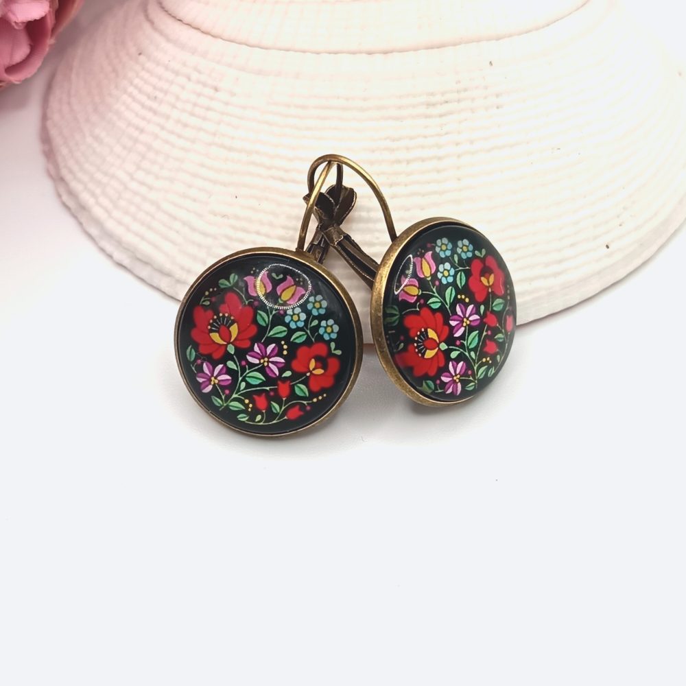 Kezdőlap Fülbevalók Franciakapcsos fülbevaló Antik bronz franciakapcsos fülbevaló – matyó mintás lencsével