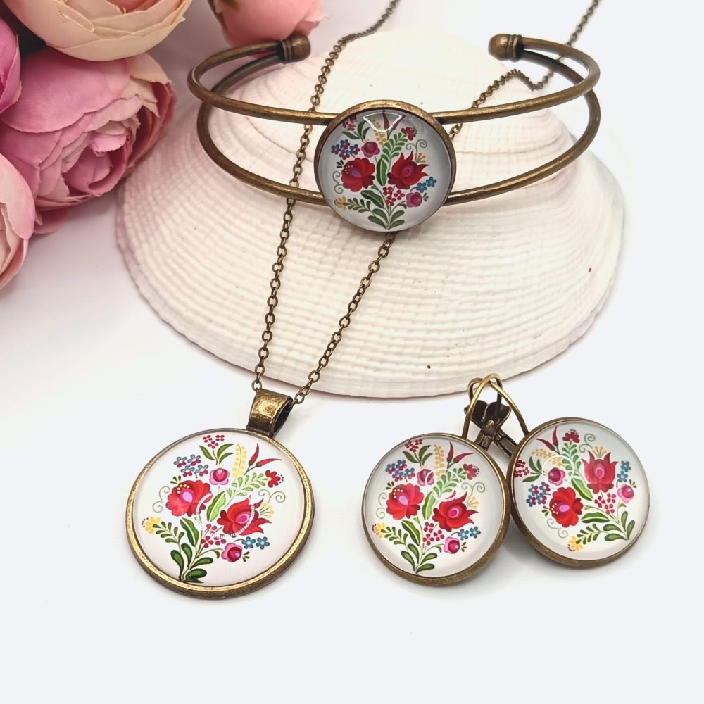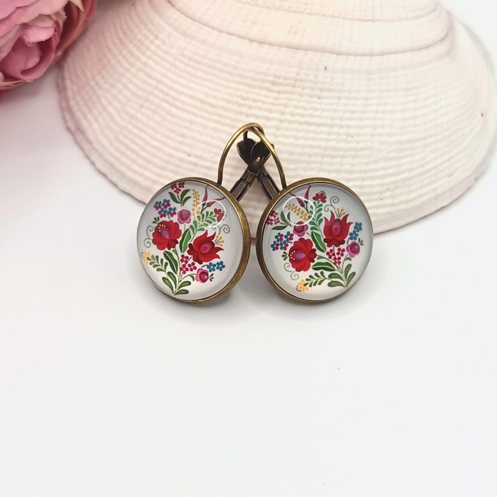Kezdőlap Fülbevalók Franciakapcsos fülbevaló Antik bronz franciakapcsos fülbevaló – matyó mintás lencsével