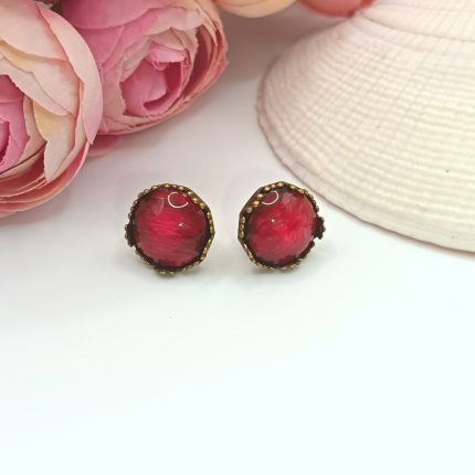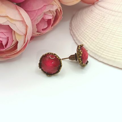 Antik bronz bedugós fülbevaló – füstös piros lencsével