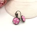Kezdőlap Fülbevalók Franciakapcsos fülbevaló Antik bronz franciakapcsos fülbevaló – rózsaszín, fehér pöttyös textillel