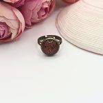 Antik bronz gyűrű – füstös rózsaszín lencsével