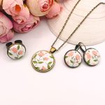 Antik bronz nyaklánc – barack virágos textil lencsével